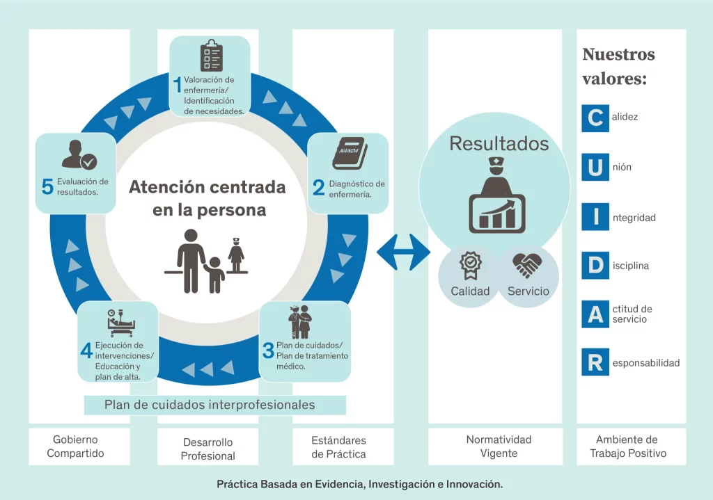 En el Centro Médico Saludora contamos con un Modelo de Práctica Profesional basado en el proceso de enfermería y los valores institucionales, que funciona como guía para enfermeras y enfermeros, centrando la atención en la persona con el fin de otorgar el mejor cuidado posible.